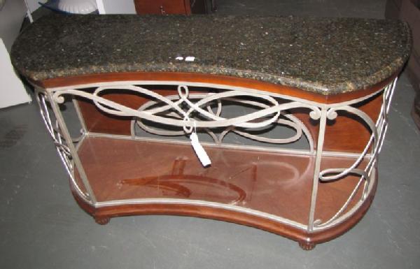 Black granite top console table with wood & metal frame, 35.5"Tx66"Wx21.5"D. Other items appearing photos not included.