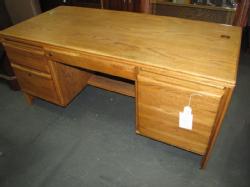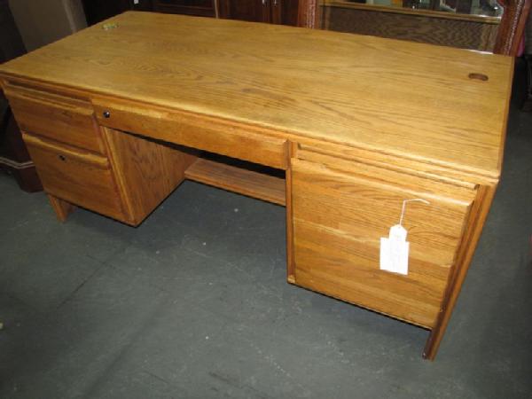 Oak desk with center computer keyboard drawer, 30"Tx67"Wx31"D. Other items appearing photos not included.