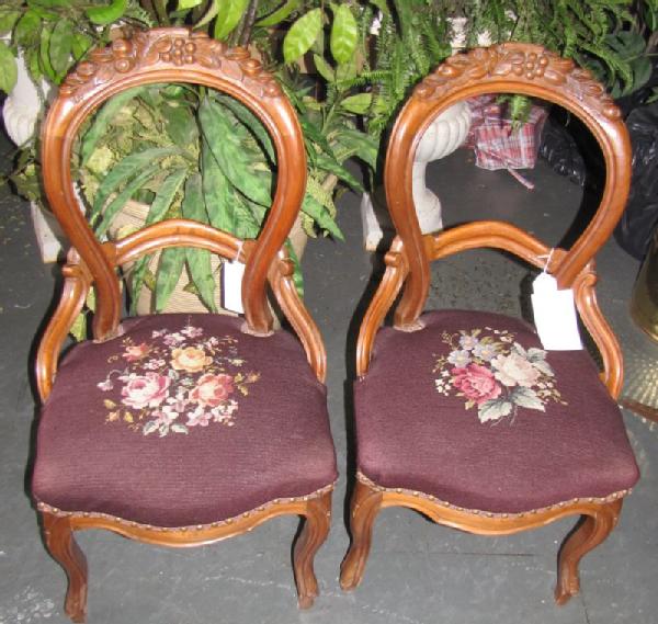 2 antique Victorian side chairs with needlepoint seats, both 36"T. Other items appearing photos not included.