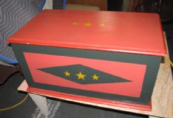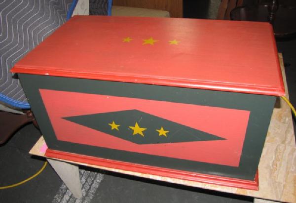 Painted toy chest, 16"Tx31"Wx18"D. Other items appearing photos not included.
