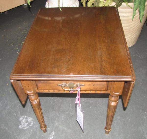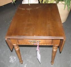 Ethan Allen drop leaf side table, 22"Tx35"W (with both 8"W leaves up)x27"D. Other items appearing photos not included.