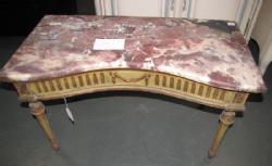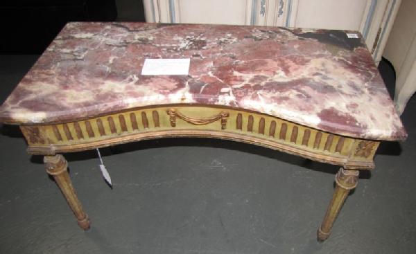 Green painted shaped bench with marble top & wood frame 21"Tx36"Wx18"D