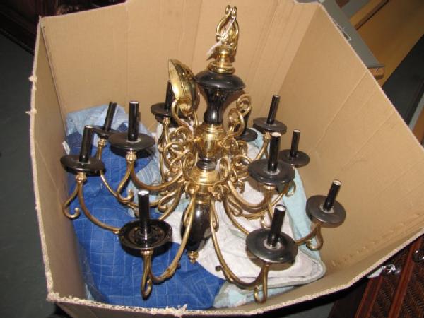 Black onyx & brass chandelier, 36"Tx36"W. Other items appearing photos not included.