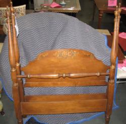 Hitchcock Harvest twin bed with pencil posts. Missing side rails. Other items appearing photos not included.