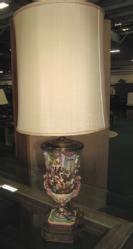 Vintage highly decorative Italian porcelain lamp with brass base and top, 32"T. Other items appearing photos not included.