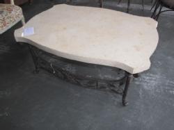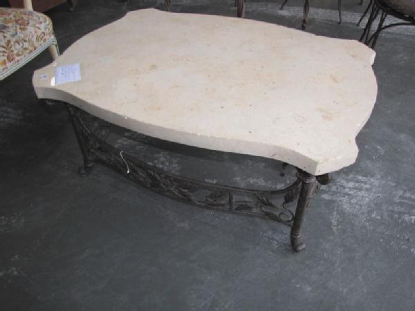 Limestone top cocktail table with iron base 16"Tx28"W40"D. Other items appearing photos not included.