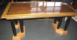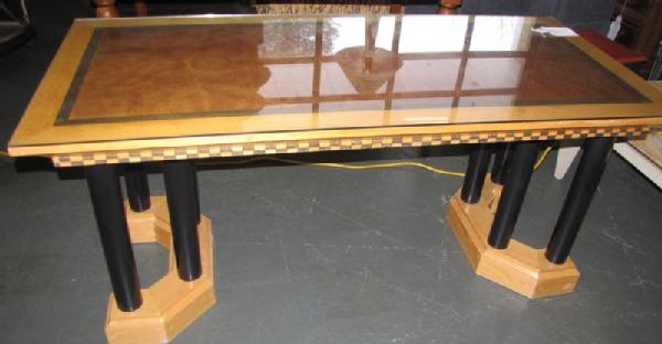 Contemporary glass top table, 30"Tx66"Wx30"D. Other items appearing photos not included.