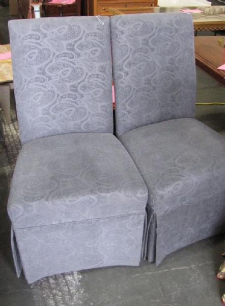 2 blue upholstered parsons chairs, 40"Tx23"Wx22"D. Other items appearing photos not included.