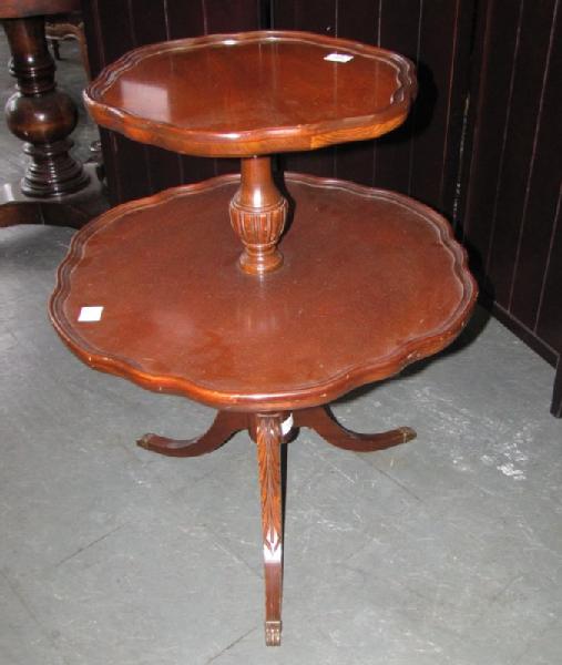 Two tiered round table with pie crust edge, 30"Tx24"W. Other items appearing photos not included.