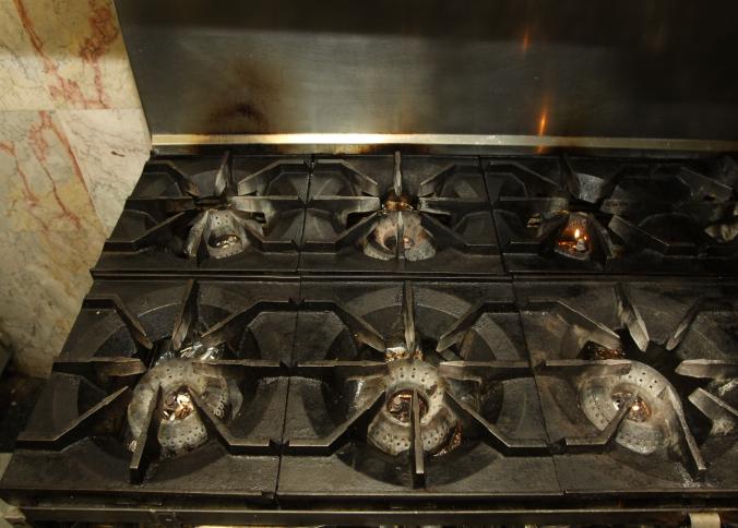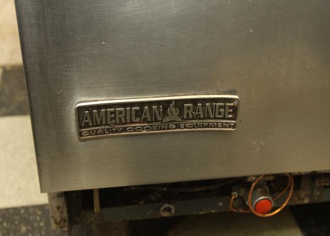 American range quality cooking equipment 10 burner stainless steel gas stove with cast iron burner plates and stainless steel backing. 60" x 32" x 57" tall. In working condition, still in use. Buyer is responsible for proper and safe removal to the first disconnect incl capping of any necessary lines. Excluding other lots.