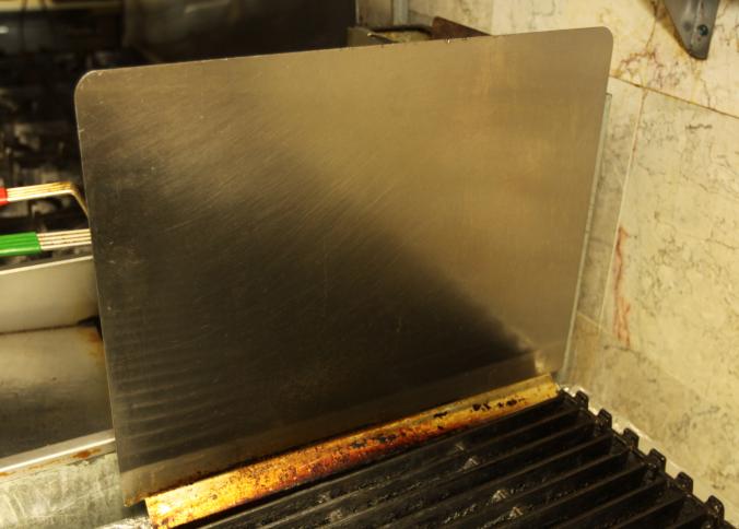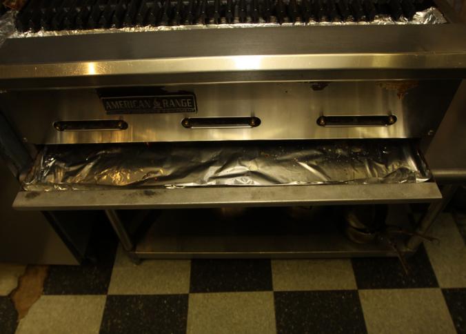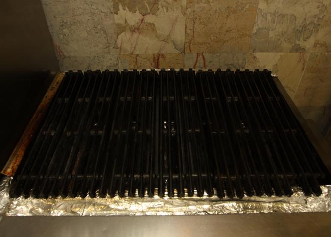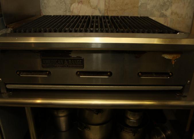 American range stainless steel six burner gas grill with cast iron grill plates. 36" x 29.5" x 10.5" tall. In working condition, still in use. Buyer is responsible for proper and safe removal to the first disconnect incl capping of any necessary lines. Excluding other lots.
