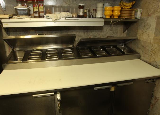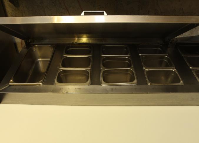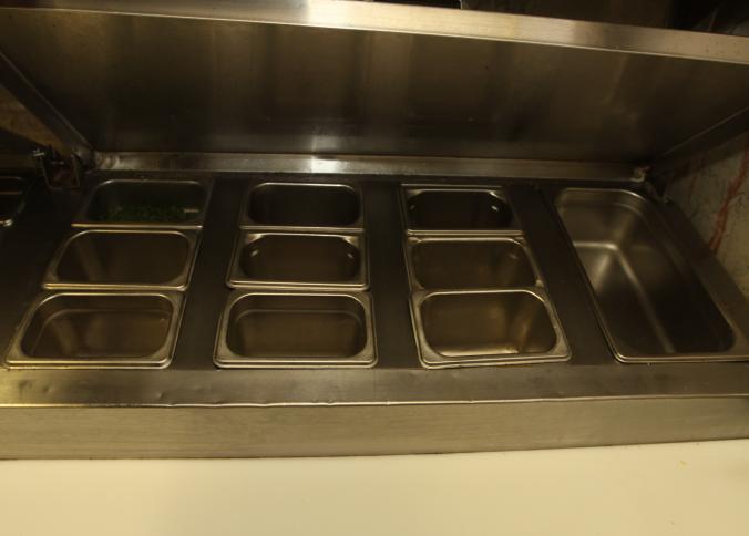 Leader stainless steel bain-marie with three lower doors and two upper compartments with twenty food trays and cutting board prep area, interior lighting, on casters. 72" x 34" x 43.5" tall overall. In working condition, still in use. Excluding other lots and contents. Buyer is responsible for proper and safe removal to the first disconnect incl capping of any necessary lines.