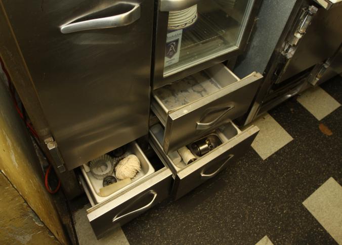 Traulsen two door three drawer stainless steel cooler model URS 86 DT, 36" x 24" x 81" tall, owner reports in working condition, not in use. Excluding contents and other lots. Buyer is responsible for proper and safe removal to the first disconnect incl capping of any necessary lines.