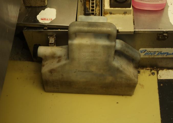 Thermaco Big Dipper grease and oil/water separator in stainless steel box 27" x 18" x 10.5" tall. In working condition, still in use. Excluding other lots. Buyer is responsible for proper and safe removal to the first disconnect incl capping of any necessary lines.