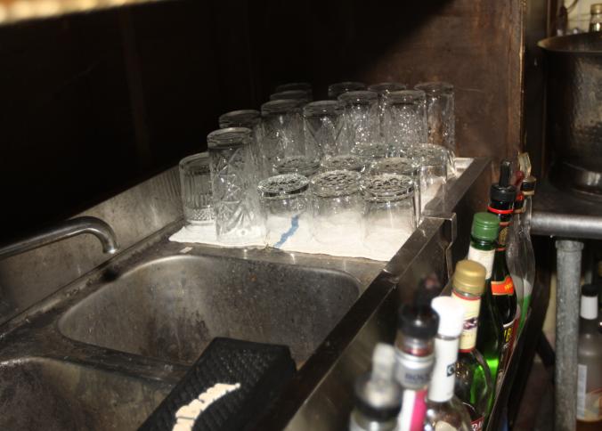 Stainless steel under bar three bay sink 71.5" x 18.5" x 24" tall, stainless steel top side table 25" x 24" x 25" tall. Excluding contents and other lots. Buyer is responsible for proper and safe removal to the first disconnect incl capping of any necessary lines.