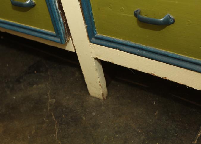 Jewelry case from Hyde Park antiques center since 1952 with four glass doors, mirrored back, attached brass locks, two interior adjustable shelves, paneled sides, applied carved decoration, three lower chamfered drawers with metal pulls. Approx. 96.5" x 32" x 93.5" tall. Description as reported by seller.