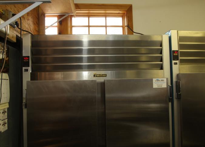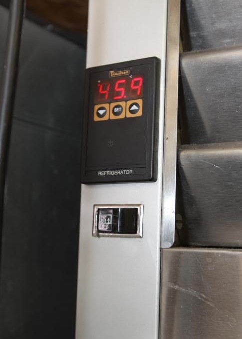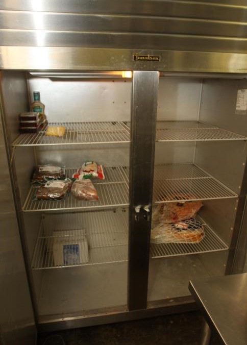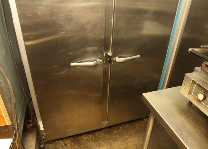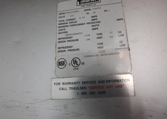 Traulsen stainless steel double door fridge model G20010, serial T263230D02 with digital thermostat, on casters 52" x 32" x 80" tall. In working condition. Excluding other lots and contents. Buyer is responsible for proper and safe removal to the first disconnect.
