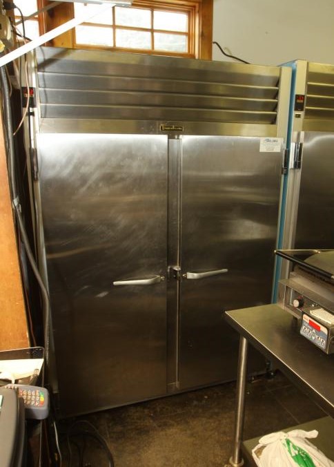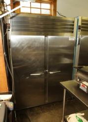 Traulsen stainless steel double door fridge model G20010, serial T263230D02 with digital thermostat, on casters 52" x 32" x 80" tall. In working condition. Excluding other lots and contents. Buyer is responsible for proper and safe removal to the first disconnect.