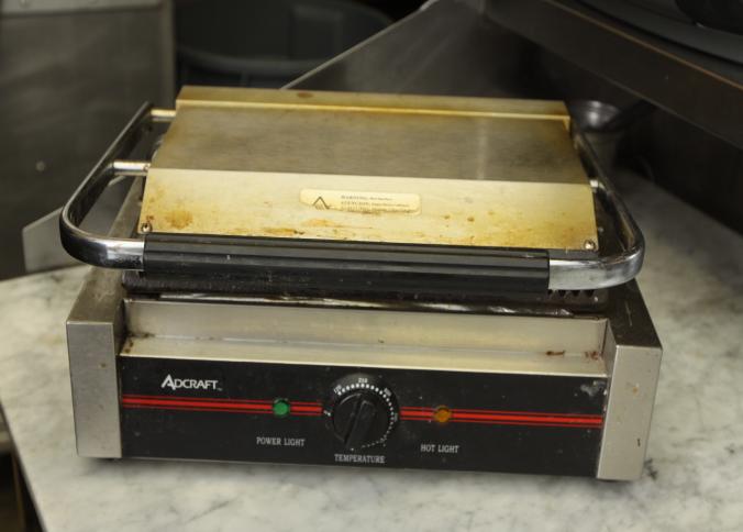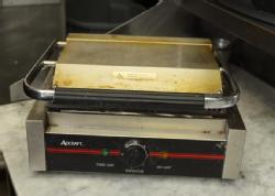 Adcraft single panini grill maker model SG-811E serial number 02070078. Owner reports in working condition.