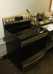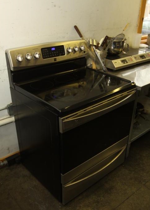 Kenmore Elite four burner convection electric stove/oven with warming zone and warming drawer, three interior racks, interior lighting model number 790.97003210, serial vf22943733. In working condition. Buyer is responsible for proper and safe removal to the first disconnect incl capping of any necessary lines
