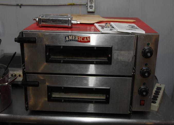 American dual electric oven model EPZ-218, serial number 10089147. 27" square x 17" tall. Located downstairs, with wide stairway for removal.
