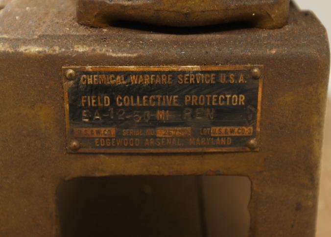 Briggs &Stratton "Chemical warfare service U.S.A. Field Collective Protector EA-12.50-MI-REN, serial No. 2675 Lot U.S.&W.CO.-3 Edgewood Arsenal Maryland", mounted to wood base. Pickup only.