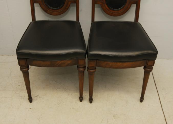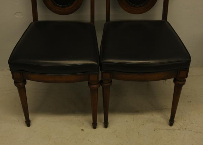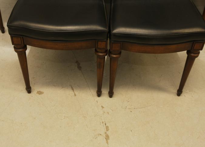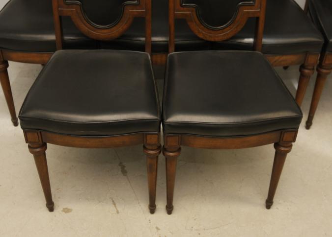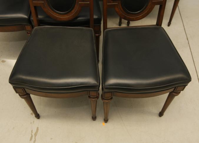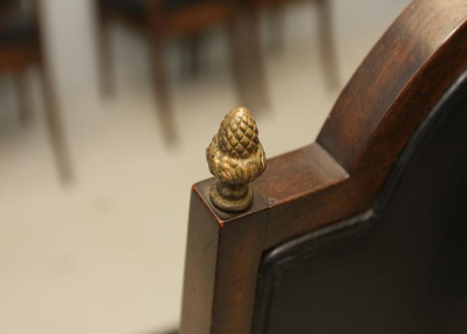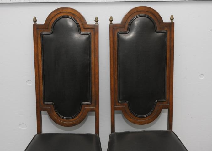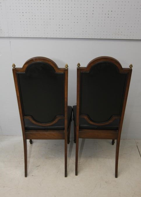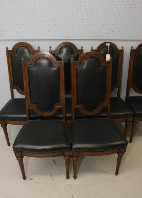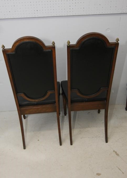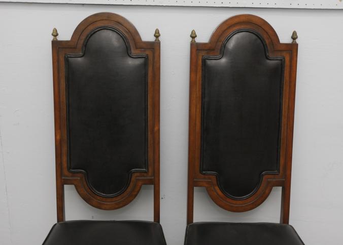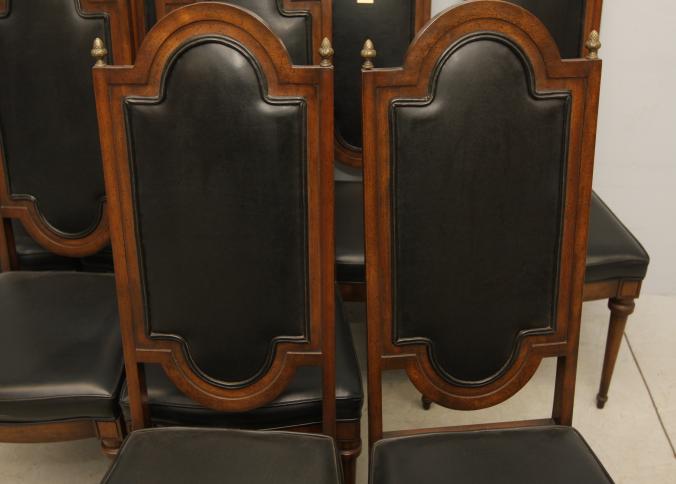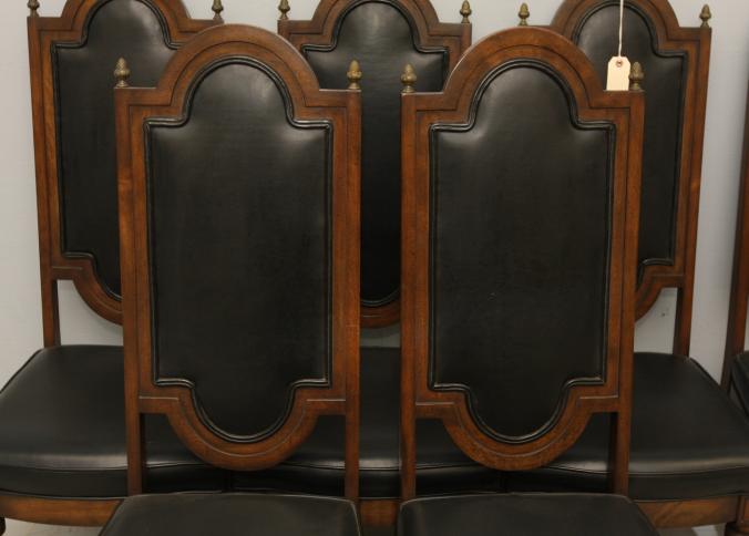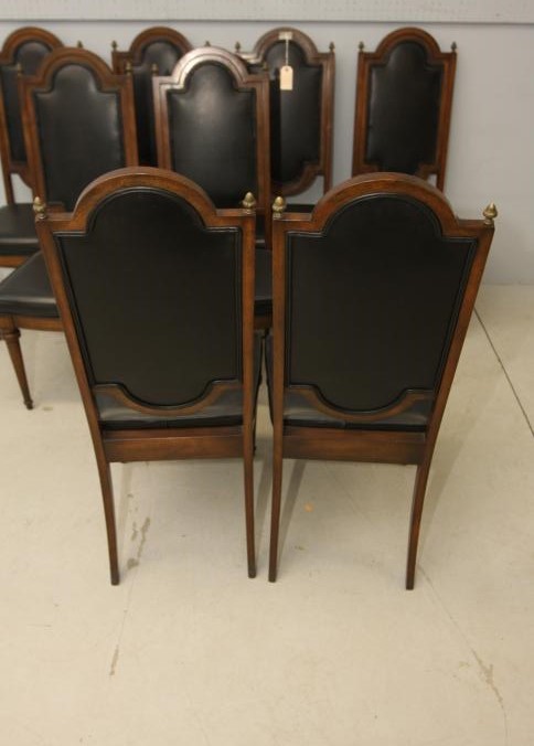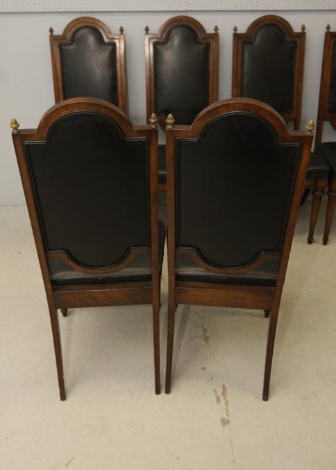 Eight matching side chairs with leather seat and backs all having acorn finials at top 18"W. Pickup only.