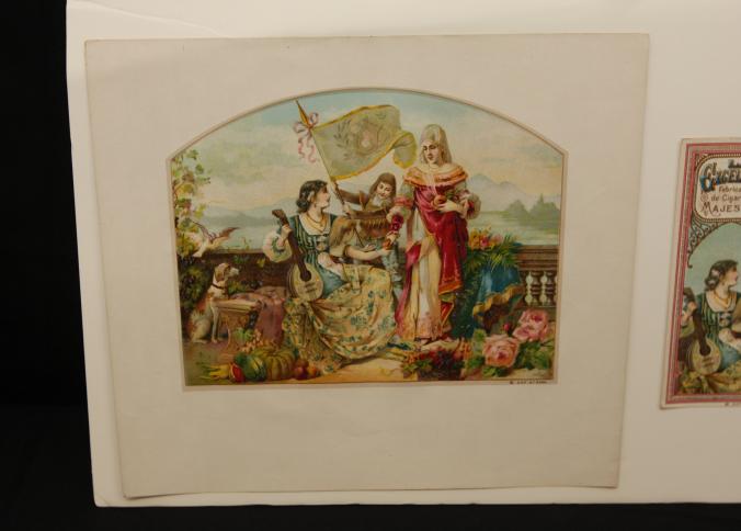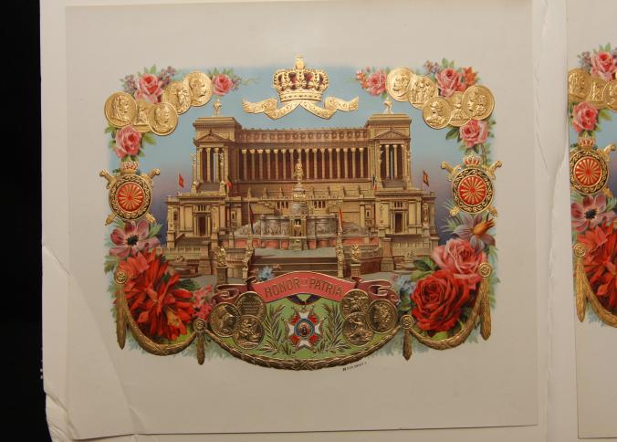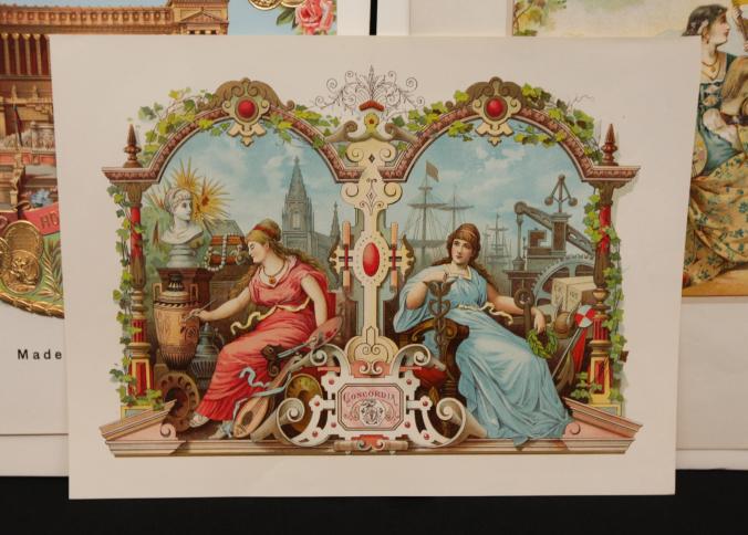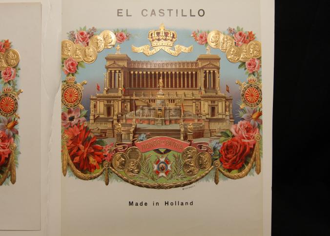 Cigar label artwork incl Concordia, La Excellent, El Castillo, and Honor ET Patria, largest being 22.5" X 14".
