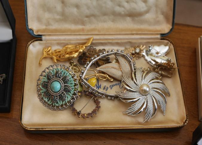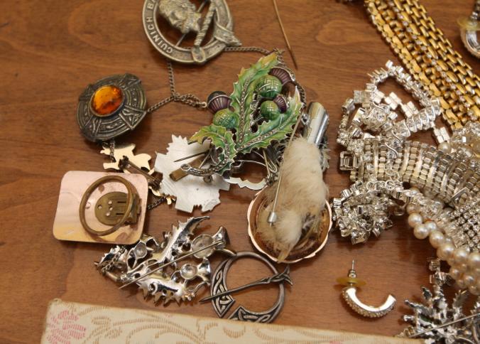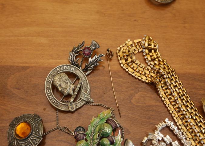 Costume jewelry incl Seiko watch, Gruen watch, Mackintosh necklace and pendent, necklaces, bracelets pins, ear rings, etc.