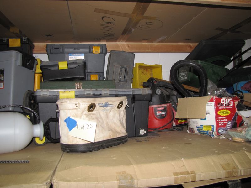 Suitcases, tool boxes, etc. Being sold buyer choice. Winning bidder can take what they want and leave the balance.