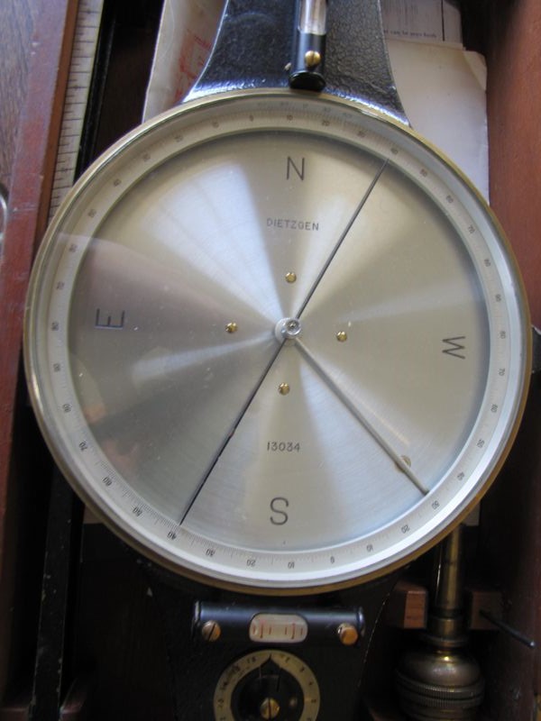 Vintage Dietzgen 13034 geologist's compass with blueprint, paperwork, original case.