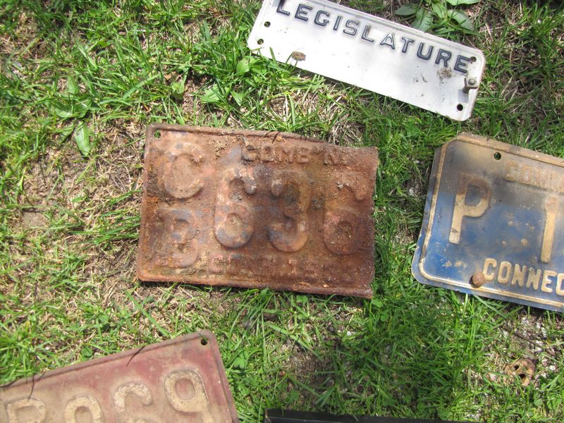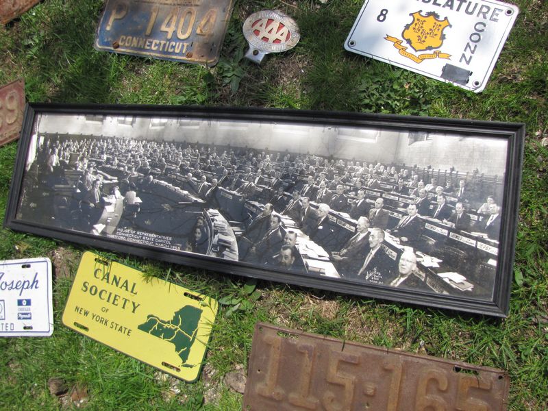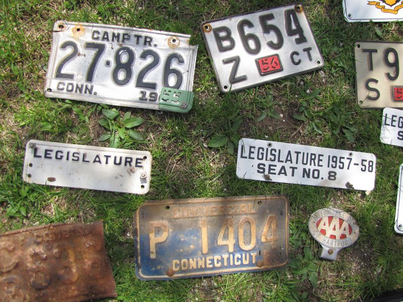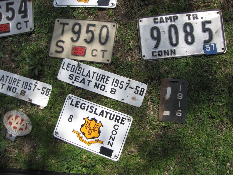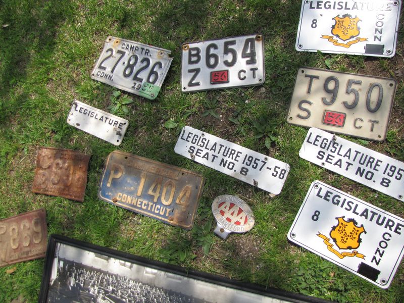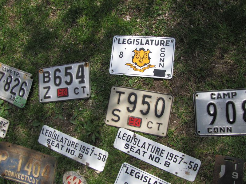 Vintage Connecticut automobile license plates plus 1950's era CT legislature tags, 1955 legislature photo, etc.