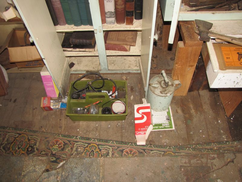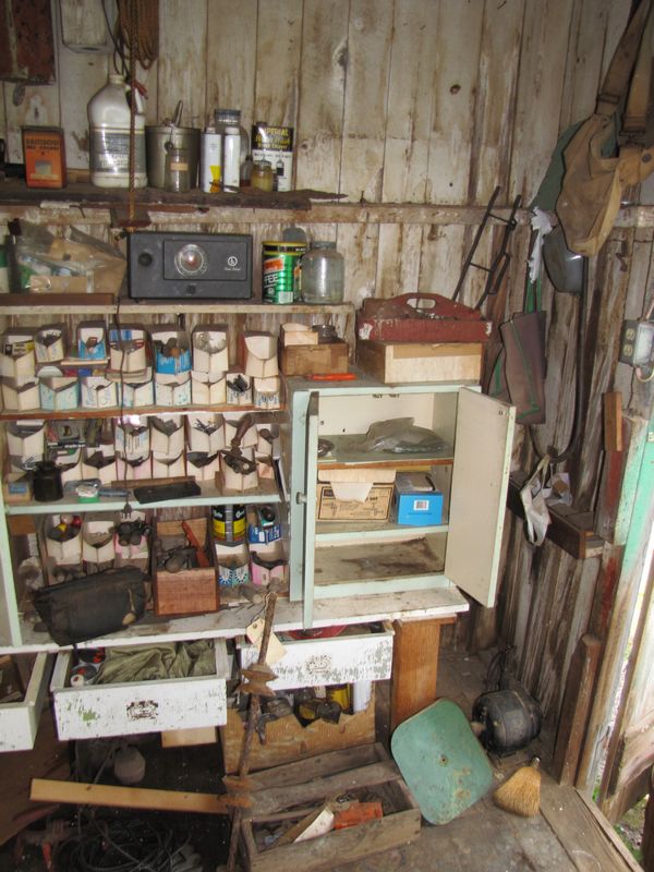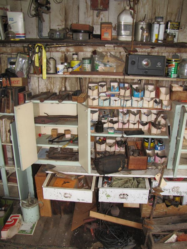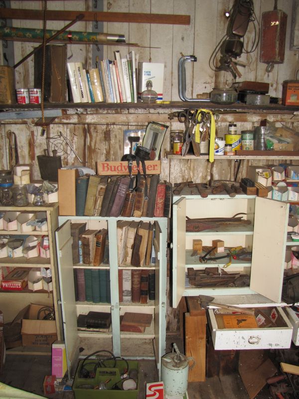 Large lot of shop contents being sold buyer choice including vintage hand tools, books, hardware and more. Winning bidder may take what they want and leave the balance.