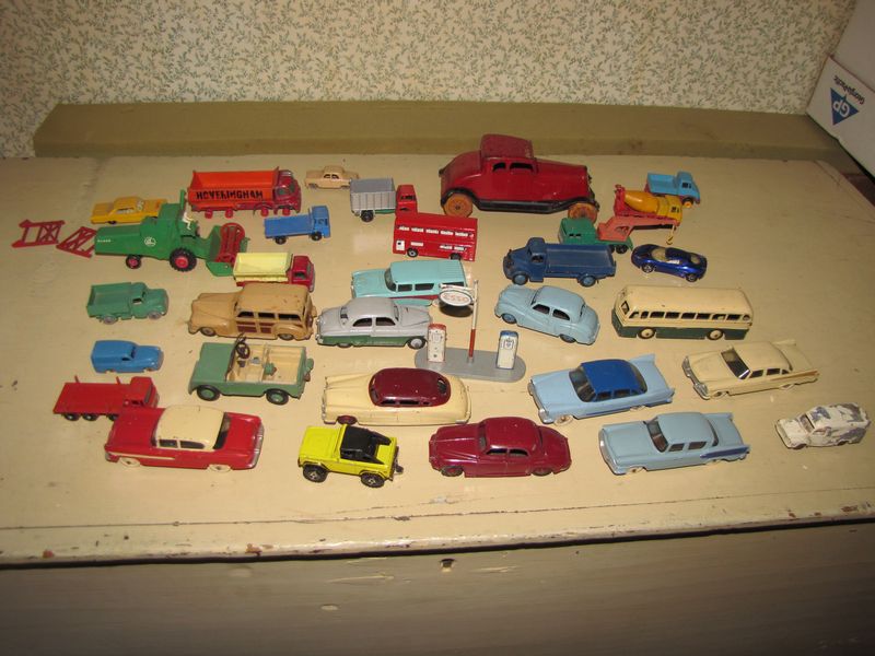Large lot of vintage metal toys, mostly Dinky toys, also includes matchboxes, etc. Some date back to 1950's. Some items are missing parts.