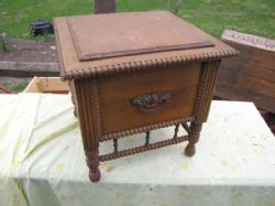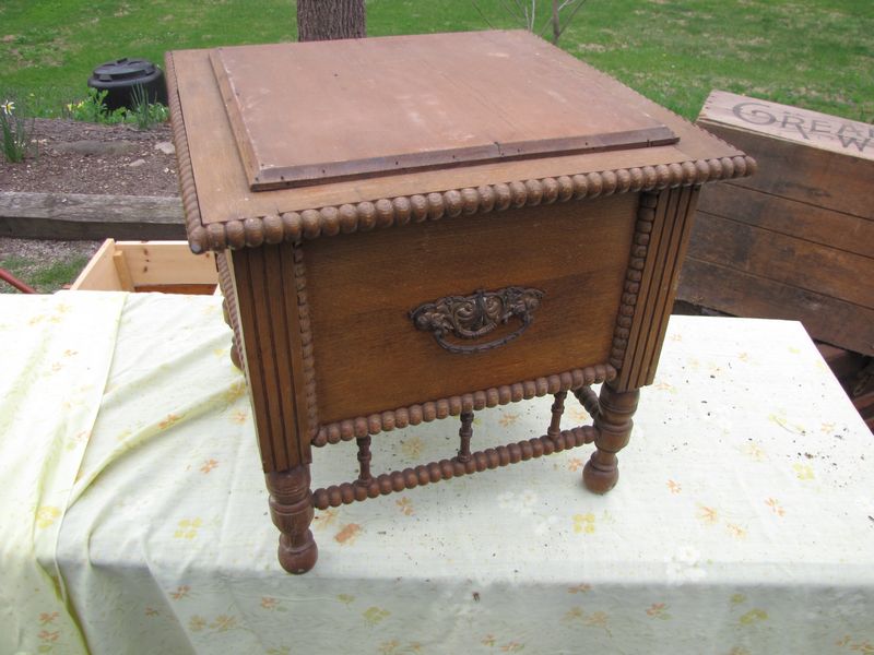 Walnut Victorian commode includes porcelain potty, brass handles
