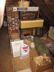 Misc. attic contents being sold buyers choice including vintage photography equipment, 2 early steamer trunks, lantern, early crocks, fan, Kennedy's biscuit wooden box, baskets, luggage, holiday decorations, mirrors, calendars, vintage dresser, magazines, etc. There are signs of mice. Winning bidder may take what they want and leave the balance. Items are located on 2nd floor with narrow, steep staircase. Buyer must bring assistance to remove these items.