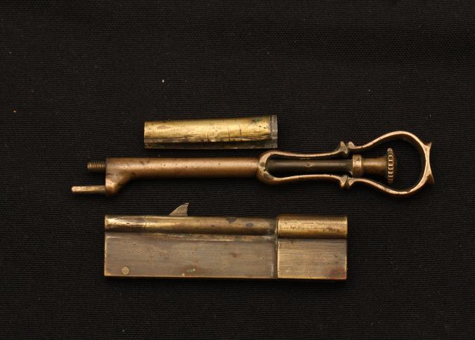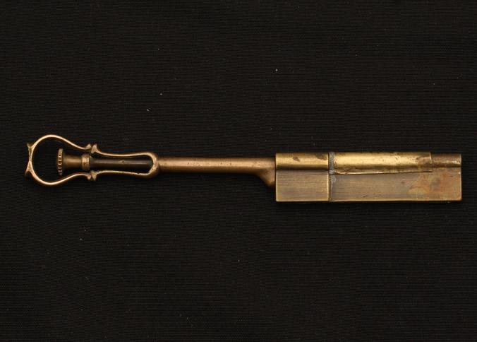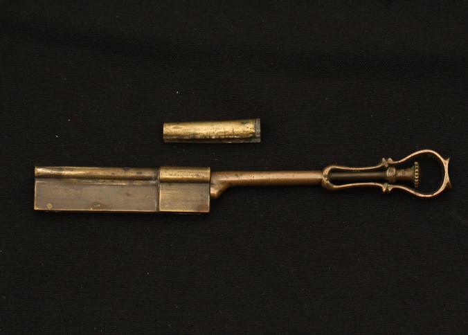 Yup, here it is, solid brass, unmarked, multiple parts. Most likely an early frameback for a wafer blade. Your guess as good as mine. 6.5" long.