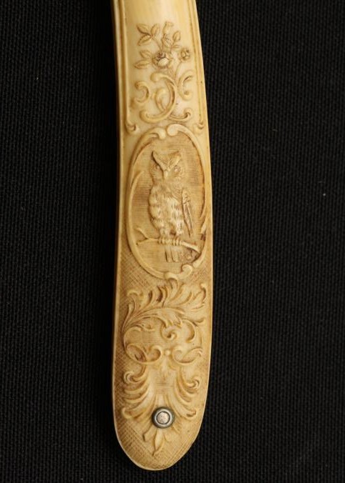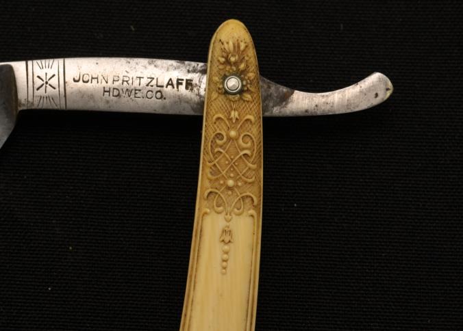 Straight razor. John Pritzlaff HDWE Co. Wonderful raised celluloid handle pattern with Owl. #50.