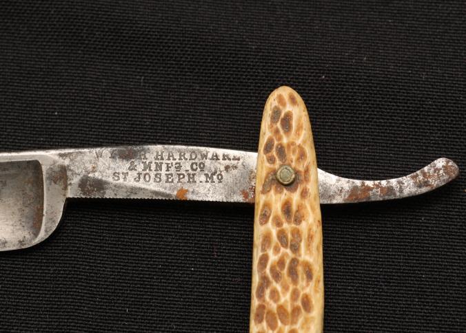 Straight razor. Wyeth Hardware & Mfg. Co. St. Joseph, MO. Rare American maker with a very desirable handle pattern of picked bone to look like stag.