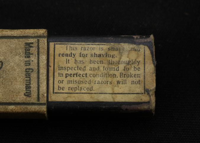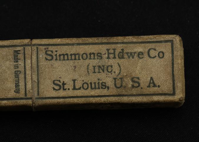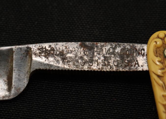 Straight Razor. Boxed Simmons Hdwe. Co. with fancy imitation ivory celluloid handle, pattern #138. Scarce and desirable American distributor with original box.