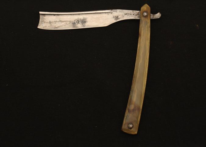 Straight razor. LeverickC-1825 clear to mottled horn handle. Rare maker.