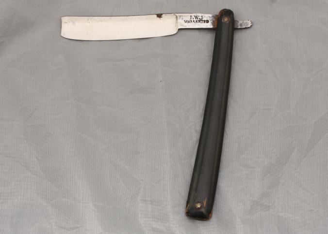 Straight razor."I.W.S. Warranted" C-1810 black horn handled razor. Rare maker.