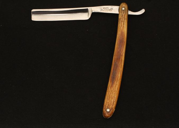 Straight razor. Wyeth Hardware & Mfg. Co. St. Joseph, MO. Rare American maker with a very desirable handle pattern of picked bone to look like stag.