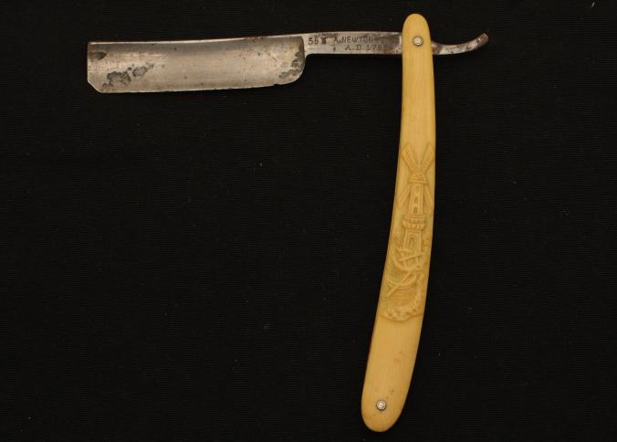 Straight razor. A. Newton & Sons. A fancy celluloid Windmill pattern #31 handle.