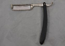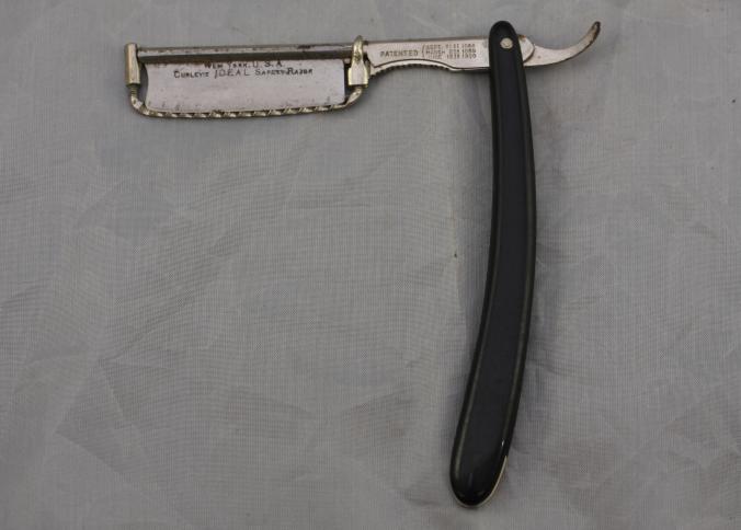 Curley's Ideal Razor with Patent Dates and original fancy guard for the wafer blade. One of the first transitional straight razors heading toward the safety razor technology.