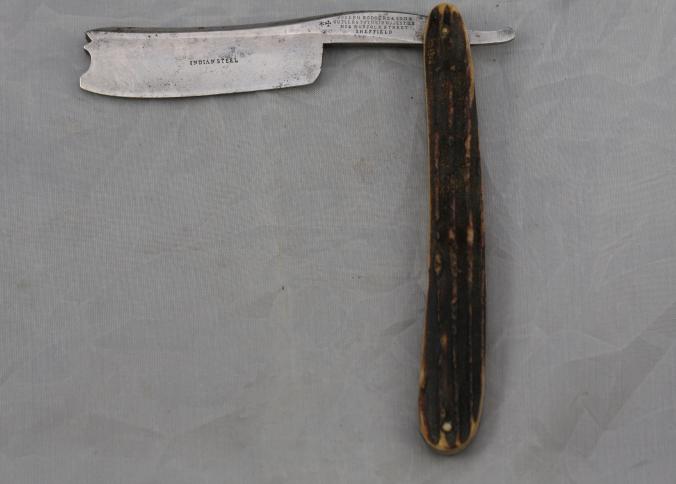 Straight Razor. Joseph Rodgers Stag handled razor with wedge blade stamped "Indian Steel." I have seen "India" steel before. But, not "Indian" steel. Rare.