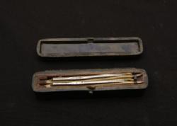 Matched Pair of "F. Pigall 4 Rupert St. (London?) ivory handled straight razors numbered "1" and "2" fitted in upright case having detached lid. I have never heard of this maker before. Great pair C-1860-70's.