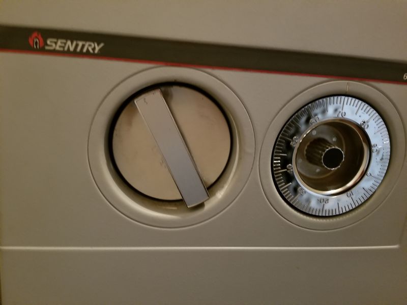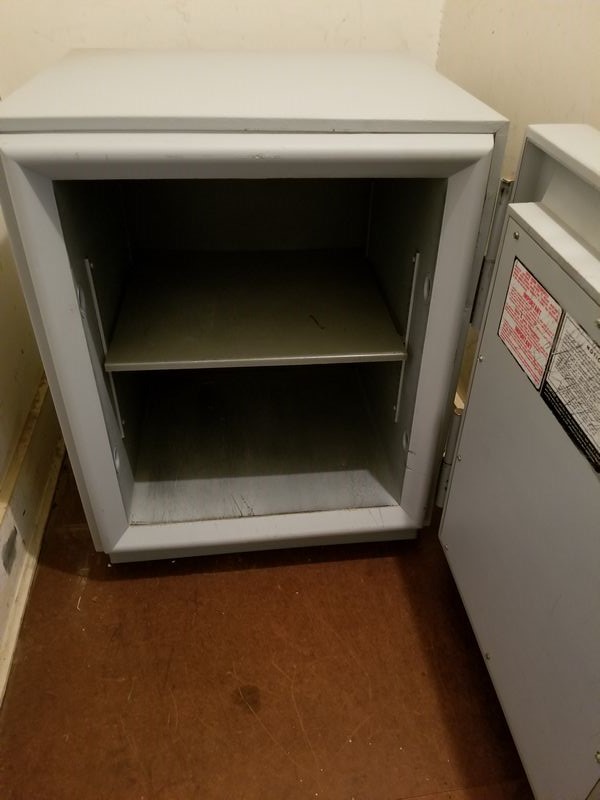 Sentry Two-Shelf Fireproof Safe. Combo lock safe has two inside shelves (combo included), 23"Wx23"Dx30"H. Very good cond-see photos for more details. Located on main floor, bring hand truck to safely remove.