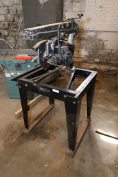 DeWalt model 7790 12" radial arm saw, 3½ HP dual-voltage motor with automatic brake, mounted on a heavy-duty steel stand. Features adjustable arm with bevel and miter capability, 12" (300mm) blade capacity, and cutting depth up to approximately 4" (102mm). Equipped with Contractor’s PowerShop controls, angle gauge, and integrated handle adjustments for precision crosscuts, bevels, and compound miters. Designed for woodworking, framing, and general shop applications.