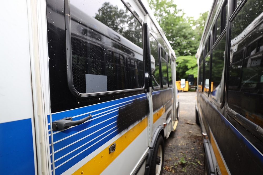 Items include 2006 Orion Bus and several 2016 Ford Paratransit Buses. Items located in White Plains, NY.